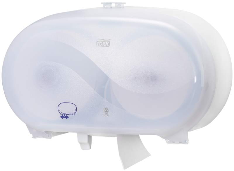 The Tork coreless Mid-size system (T7) fits two rolls and will make sure that you never run out of paper.