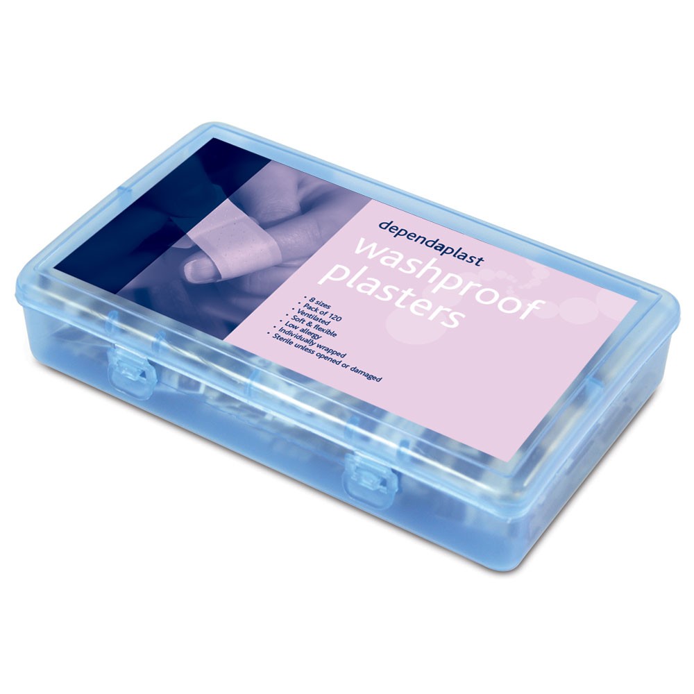 Assorted sized plasters. Supplied in robust plastic box. Box of 120. CONTENTS: 20 x 4cm x 4cm, 20 x 7.5cm x 2.5cm, 20 x 4cm x 2cm, 20 x 6cm x 2cm, 12 x 7.5cm x 5cm, 10 x Anchor, 10 x Fingertip, 8 x Extension.